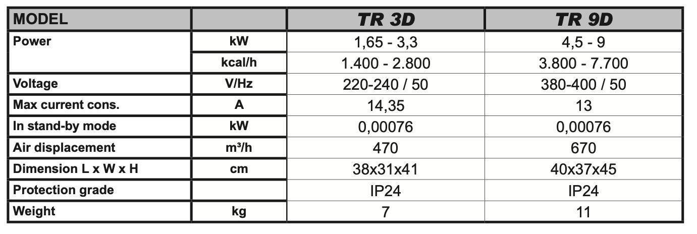 MASTER TR 3 D - Závesný elektrický ohrievač s max. výkonom 3,3 kW - napätie 230V